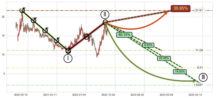 ➣ D点拟合预测价格19.46,距离最后交易收盘价格16.16相差 +20.44%