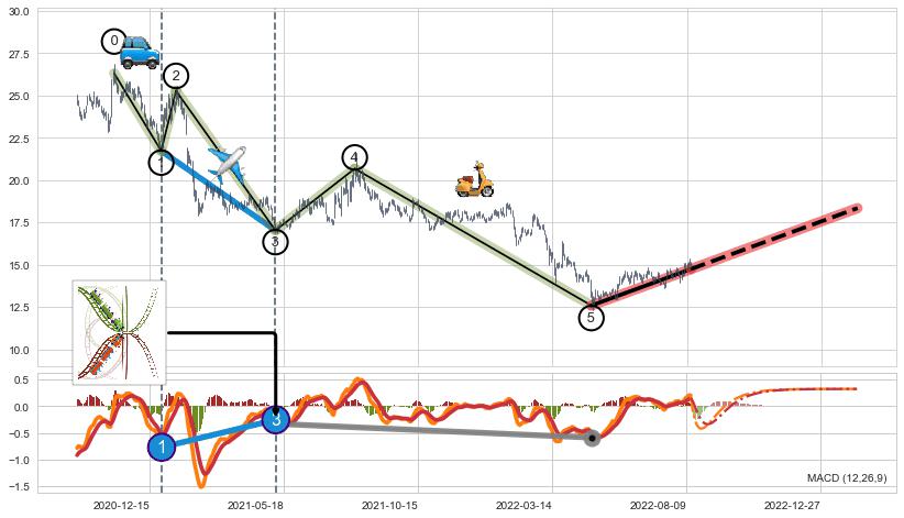 ➣ 波浪理论:猜想止跌 → 上涨 →【拐点】浪5已完成 → 大趋势均值回复