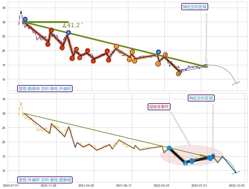 ➢ 升旗形属【短级别信号事件】趋势线属【长级别信号事件】长短周期组合信号事件, 短长事件长度比23.74%