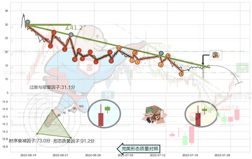 ➢ 🕰 价格走势在2022-07-19至2022-07-20期间形成顶部尽头线(下山虎),残存影响值:-3.53