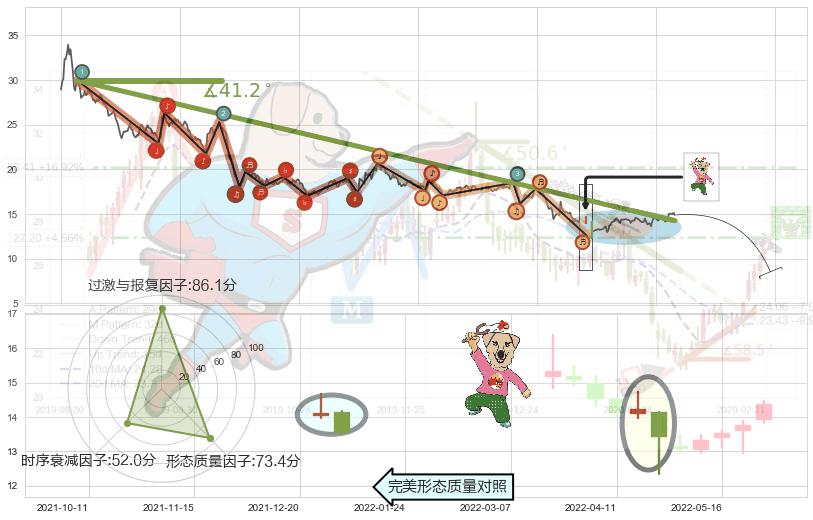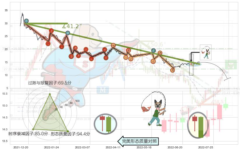 从2020-07-21至2022-06-27,共包含469个交易日,阶段股价下跌-66.02%,阶段股价变动位移路程比: 1 : 9,下跌趋势角度: 41.2
