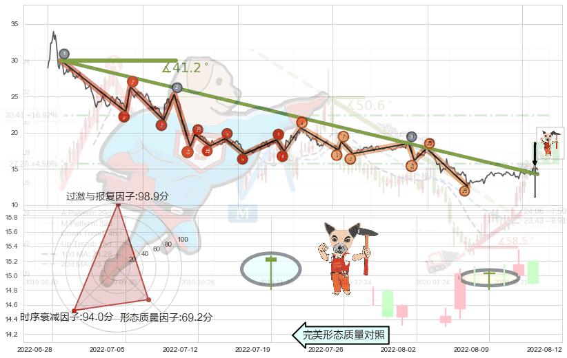 ♘ 阻力价格位17.45,可信任强度70.15%,距离最后交易2022-08-12形成的收盘价格14.89相差 +17.21%