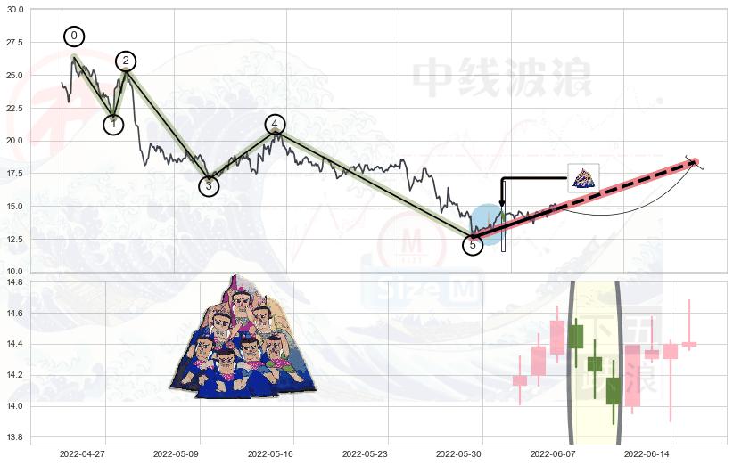 ➢ 🕰 价格走势在2022-06-10至2022-06-16期间形成低档五阳线,残存影响值:2.91
