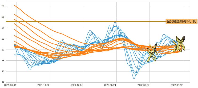 ➣ 45小时均线于(2022-08-10: 21.16)形成【金叉】基于【金叉历史模型】预测金叉后最高波峰价格: 25.18, 金叉后最高价格22.15,尚未达到预测最高波峰价格, 预期继续上涨