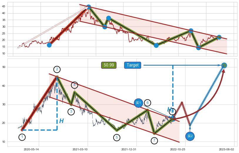 ➢ 【仅预测突破】最后价格:21.91与预测突破价格:22.37→【空间临近】后续最小【整理】第一目标价格→(2023-06-02: 50.99 )