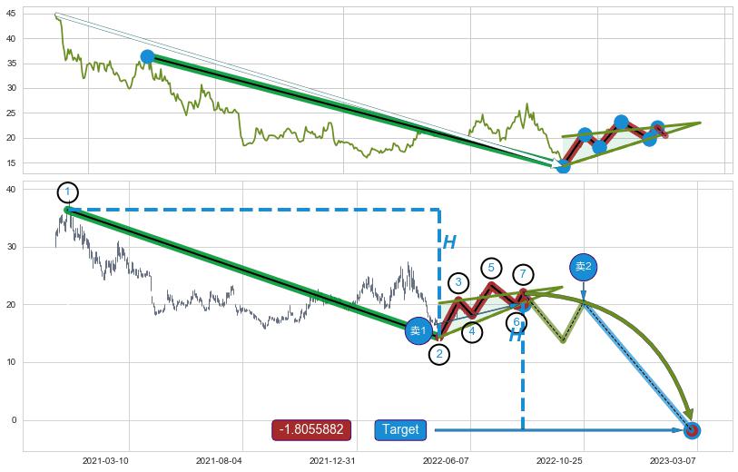 ➢ 【看空】信号叠加后首先朝【目标达成】方向, 之后【反向回撤】方向