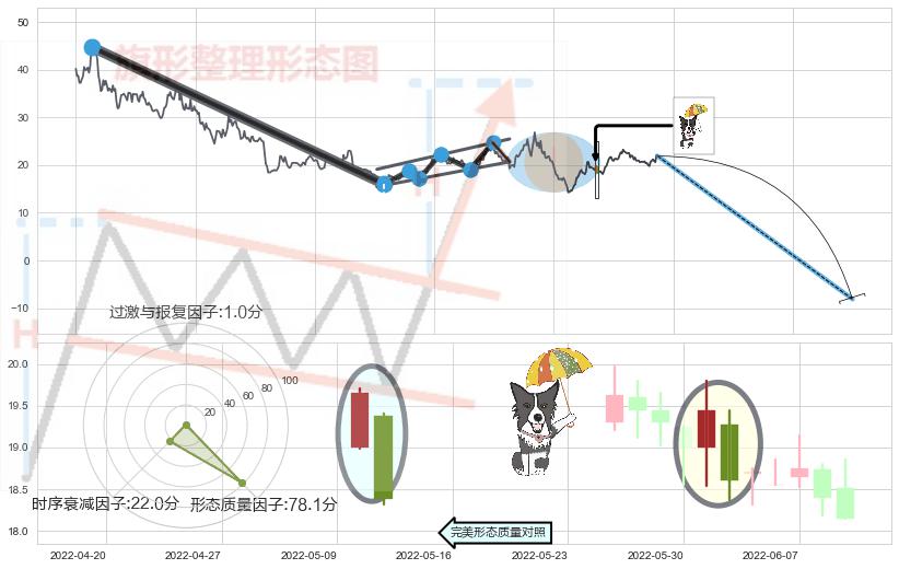 ➢ 🕰 价格走势在2022-06-28至2022-06-28期间形成锤头线(锤子线),残存影响值:4.82