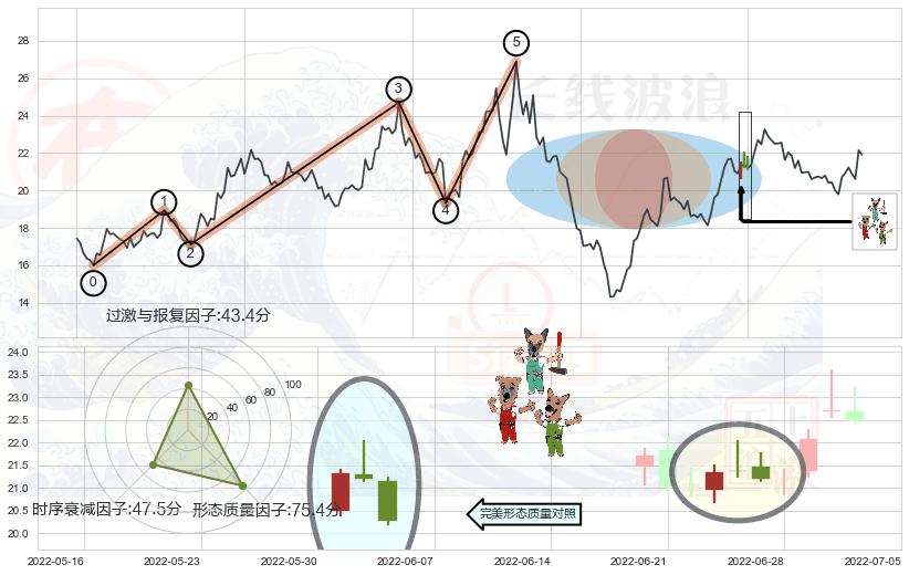➢ 阴包阳形态 🔜 波浪理论上涨浪:浪5回调拐点 综合量化分数:47.87 【中性】