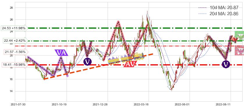 ♘ 阻力价格位22.44,可信任强度66.36%,距离最后交易2022-08-12形成的收盘价格21.91相差 +2.42%