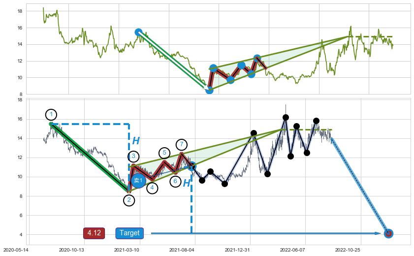 ➢ 2022-04-20到达第❶价格目标位置13.22