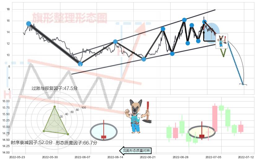 ➢ 🕰 价格走势在2022-07-06至2022-07-12期间形成下降三部曲(降势三鹤),残存影响值:-6.47