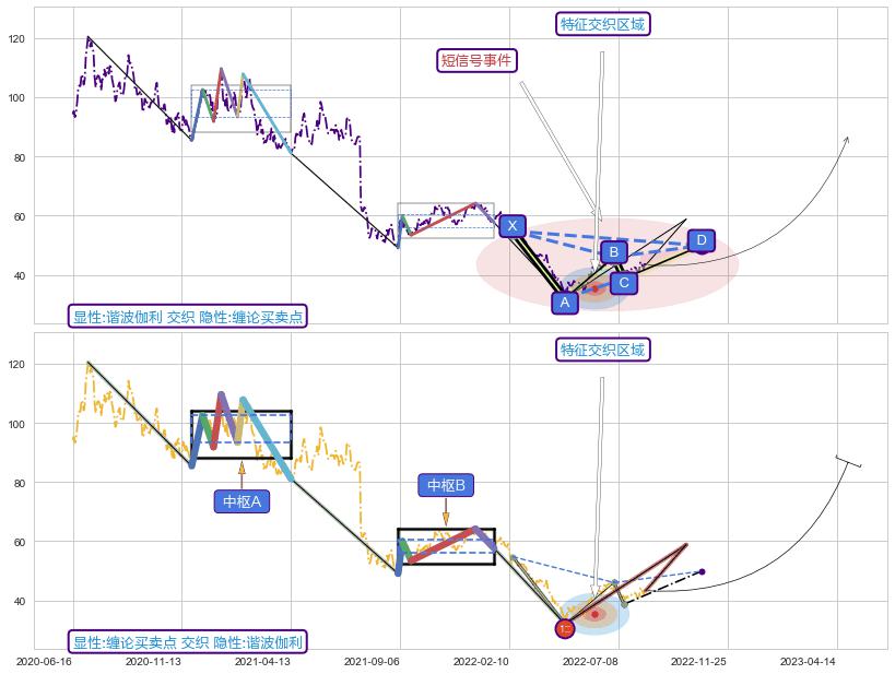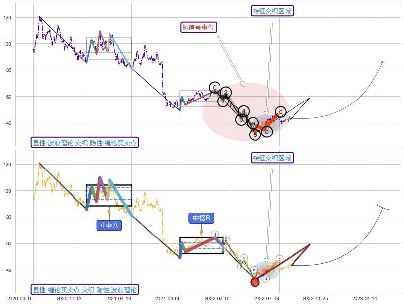 ➣ 缠论中枢点:猜想破位中枢B后持续下拉 → 下跌 → 破位中枢B支撑 → 持续趋势跟踪