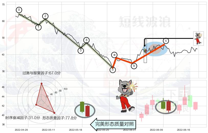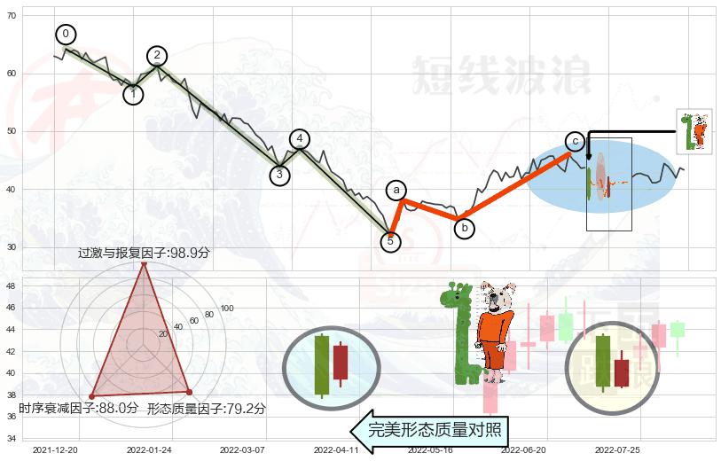 ➢ 看跌(高位倒锤头)流星线 🔜 波浪理论c点反弹终止反转下跌 综合量化分数:47.34 【中性】