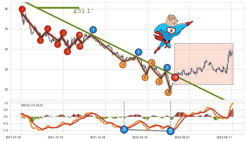 ➣ AI预测: 假定反转启动后, 第❶目标位置(2022-10-14, 26.84)