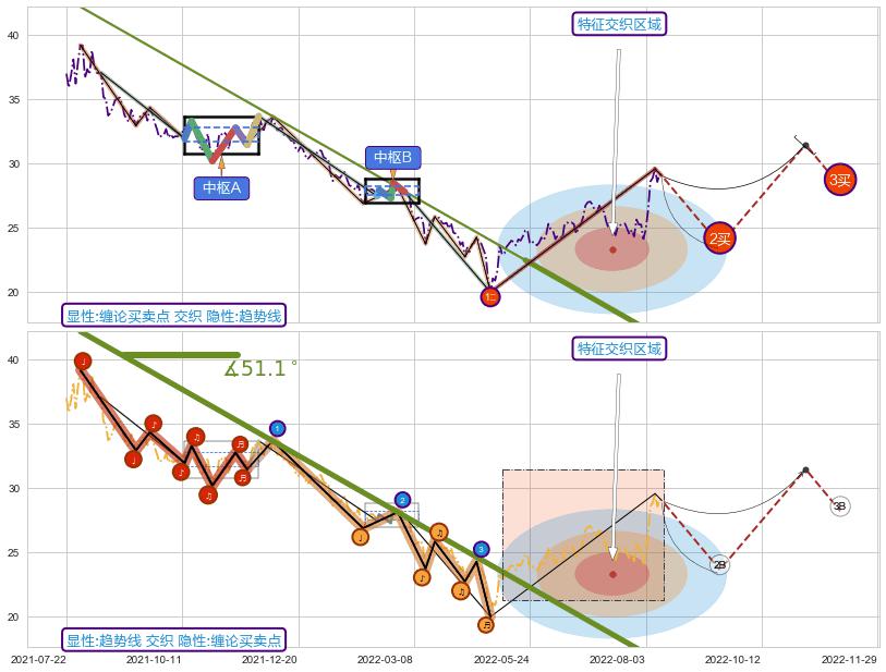 从2021-07-30至2021-11-24,共包含77个交易日,阶段股价下跌-14.68%,阶段股价变动位移路程比: 1 : 8,下跌趋势角度: 57.0