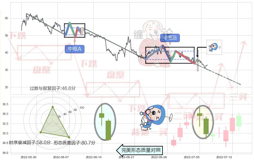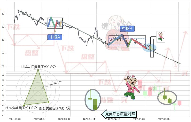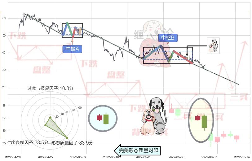 ➣ 【中枢B】:2021-11-29-2022-06-22,中枢由5笔构成,共136交易日, ZG=40.93, ZD=36.12
