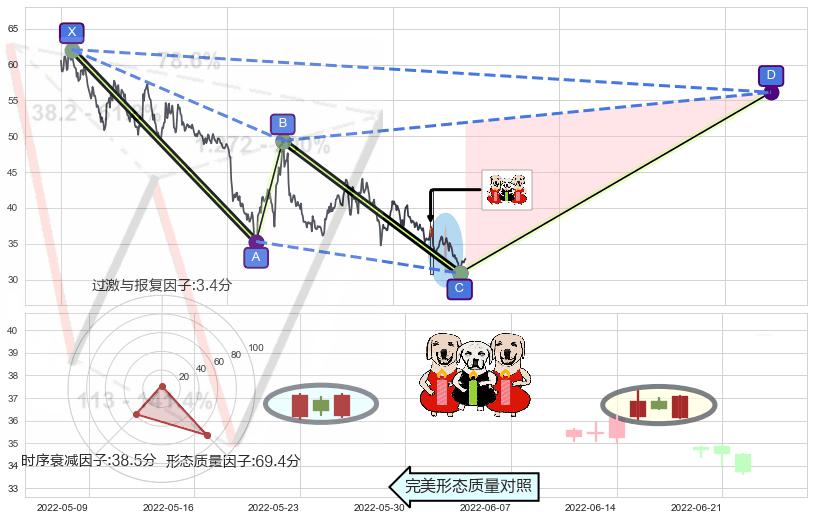 ➢ 曙光初现形态 🔜 谐波赛福下沉击穿c上涨拐点 综合量化分数:50.54 【中性】