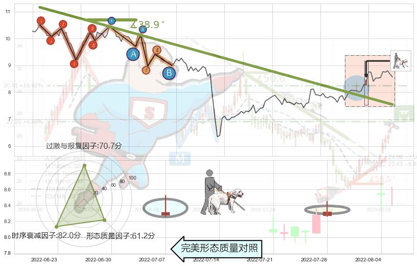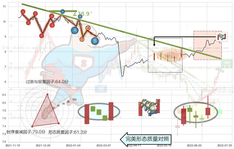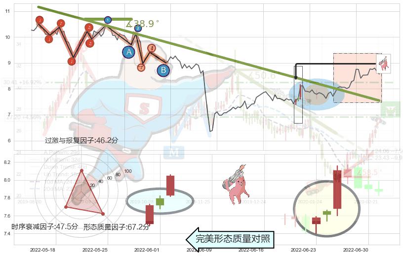 ➣ 2022-01-04-2022-05-10下跌趋势存在反转上涨[机会],其原下跌趋势的阻力位(7.55)已被突破[强支撑信号],原下跌趋势角度: 38.9˚