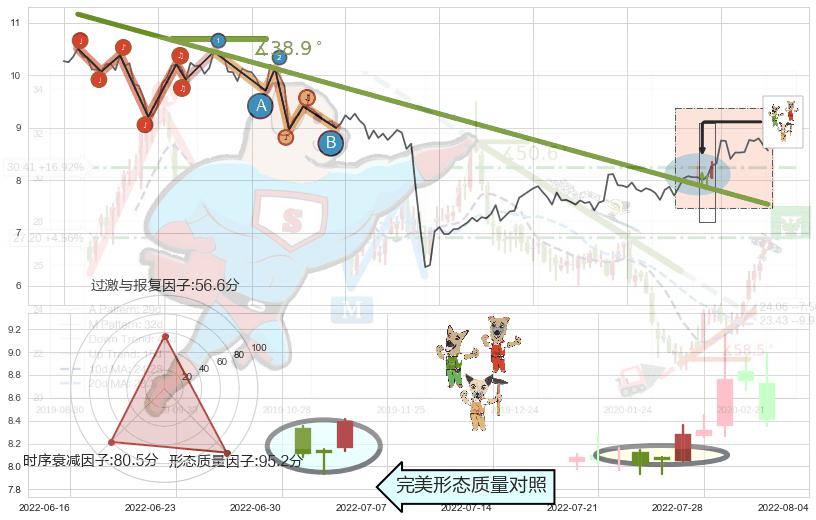 ➢ 2022-01-04-2022-05-10下跌趋势存在反转上涨[机会],其原下跌趋势的阻力位(7.55)已被突破[强支撑信号],原下跌趋势角度: 38.9˚