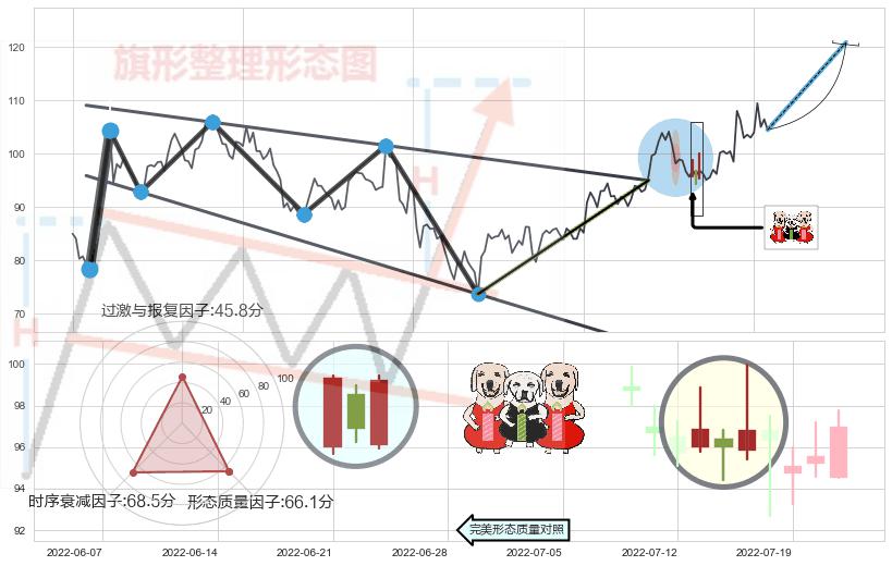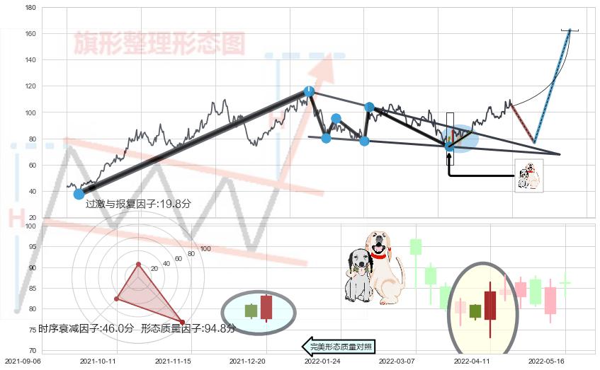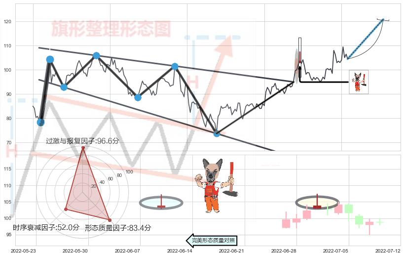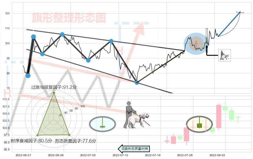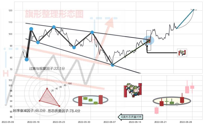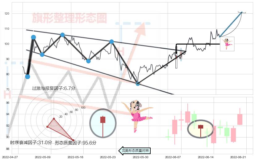 ➢ 【买1】: 激进型 买点 →(2022-06-24: 95.00 )形成突破降⚑旗形【整理】形态