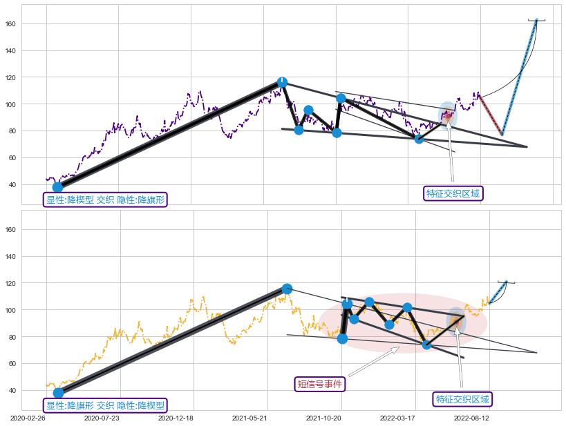 ➢ 降旗形属【短级别信号事件】降楔型属【长级别信号事件】长短周期组合信号事件, 短长事件长度比31.13%