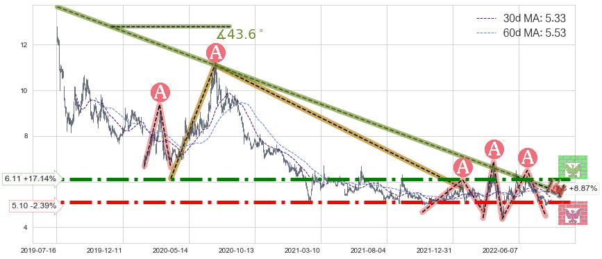♞ 30日均线:5.33,60日均线:5.53→ 快线<慢线