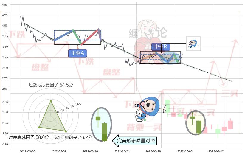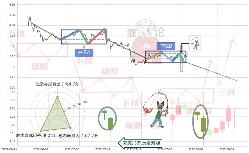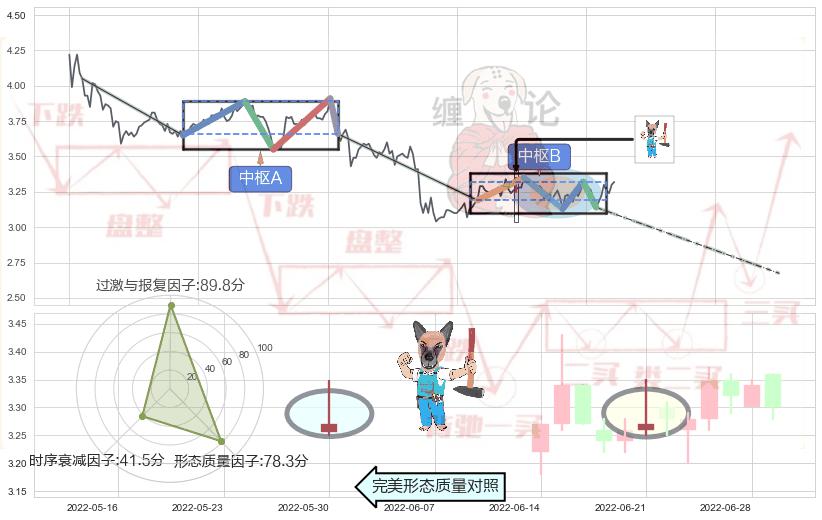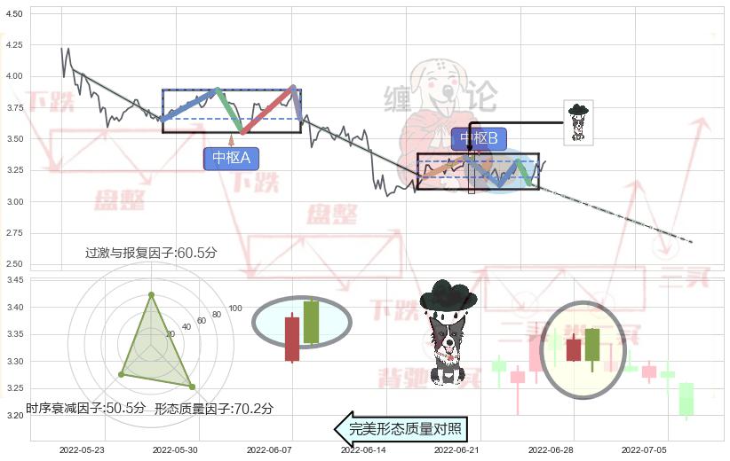 ➣ 下跌螺旋桨 + 缠论中枢点破位中枢B支撑下拉信号叠加后【信号初始稳固度】中等,【看空】信号叠加【可信度影响中等】
