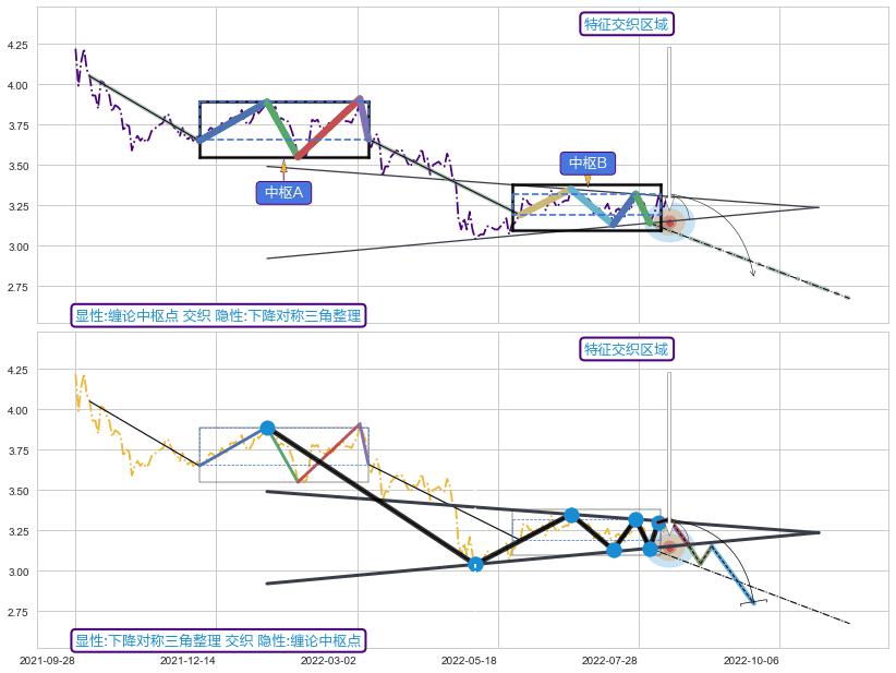➢ 缠论中枢点与下降对称三角整理信号事件周期长度级别相同,同周期信号事件