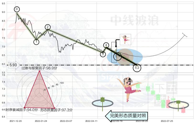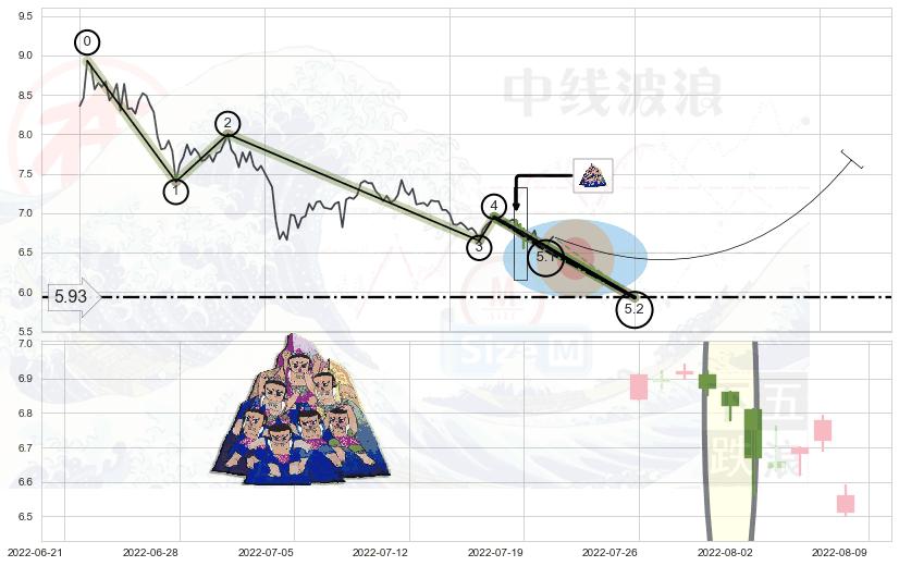 ➣ 5.1: 预测当前第5浪位置(2022-08-10, 6.52),仍然有下跌空间