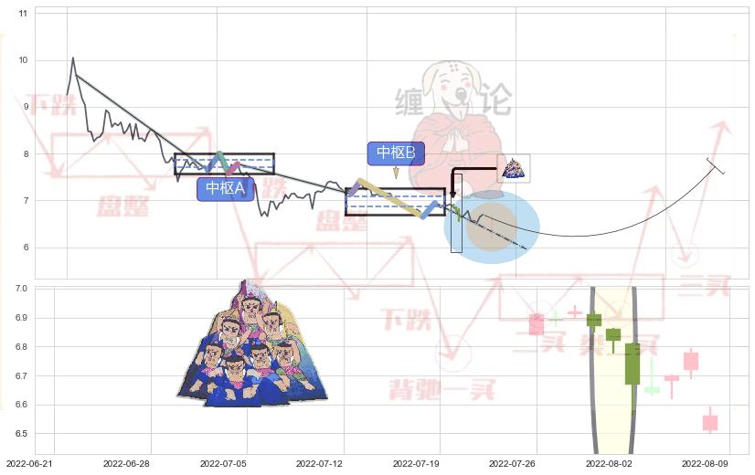 ➢ 【中枢B】:2022-06-13-2022-07-21,中枢由4笔构成,共29交易日, ZG=7.14, ZD=6.95