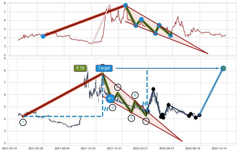 ➣ AI预测: 假定反转启动后, 第❸目标位置(2024-10-21, 7.80)