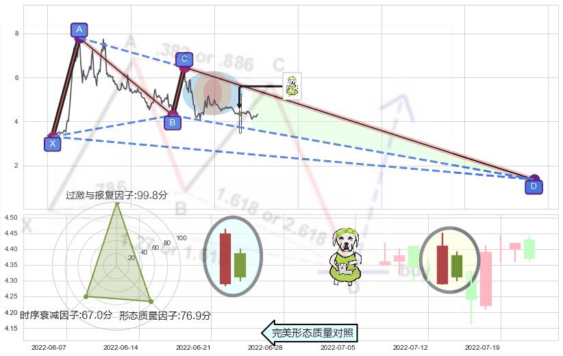 ➢ 🕰 价格走势在2022-06-06至2022-07-04期间形成下降三部曲(降势三鹤),残存影响值:-6.36