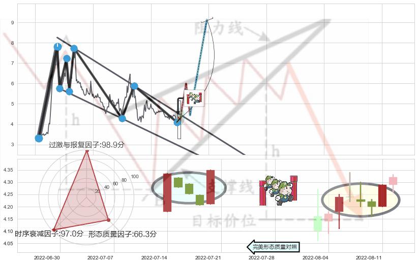 ➣ 【仅预测突破】最后价格:4.32与预测突破价格:4.64→【空间临近】后续最小【整理】第一目标价格→(2022-10-14: 9.13 )