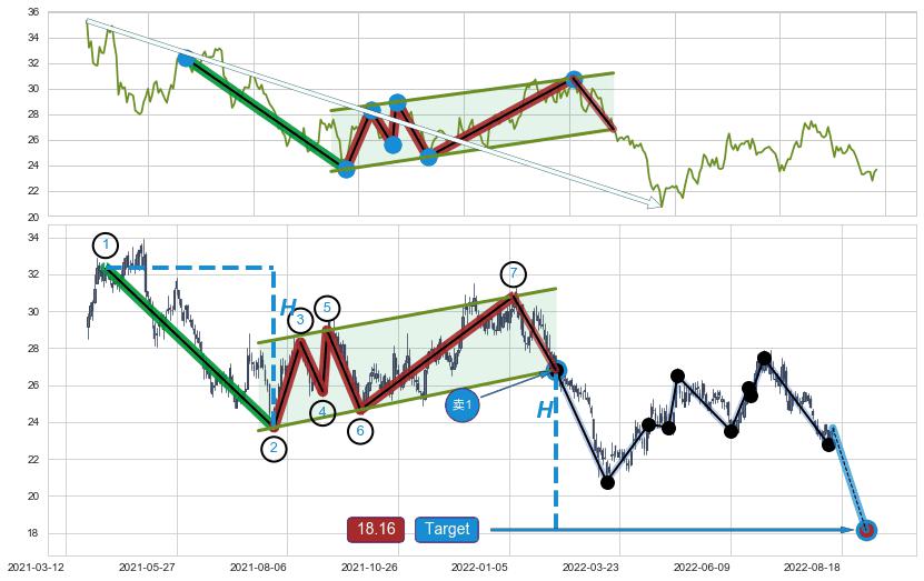 ➣ 最小中继整理涨幅→𝐇: 14.40 (𝐇旗杆的长度:旗杆起点→顶点)