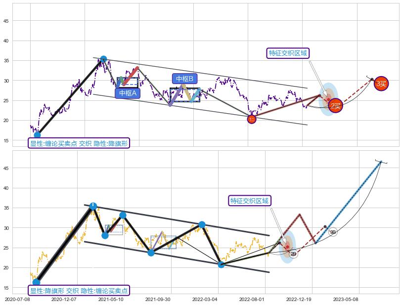 ➣ 缠论买卖点:下降缠:猜想2买趋势延续,蓄力上涨至3买(大周期趋势均值回复中的小周期趋势跟踪)