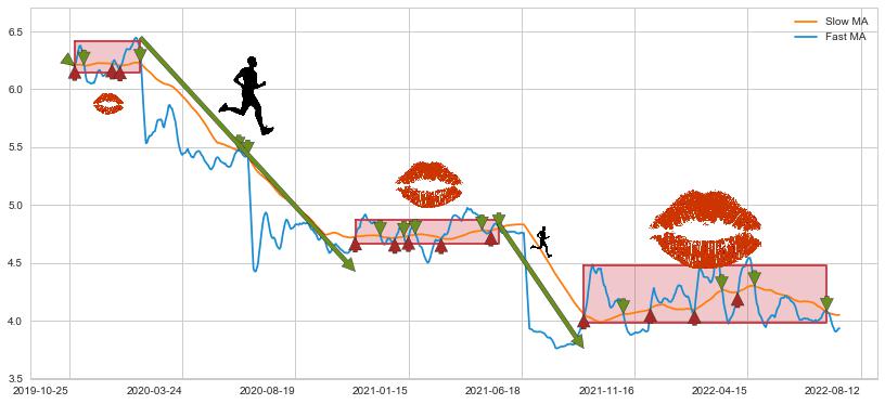2021-09-03至2022-07-28 慢线与快线多次接触,存在上下穿越,有缠绕