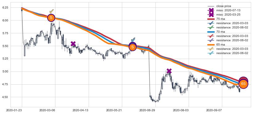 ➢ 最优均线组合共正确确认支撑阻力信号3处,正确确认率 60.00%