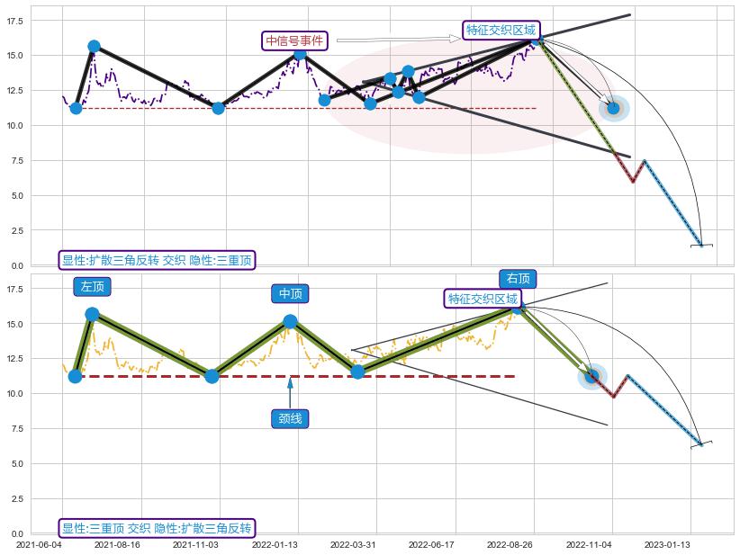 ➢ 扩散三角反转属【中级别信号事件】三重顶属【长级别信号事件】中长周期组合信号事件,中长事件长度比46.13%