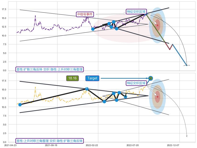 ➣ 【未确认突破,预测即将形成突破】【扩散】三角形反转起点:2022-01-27, 预测突破点:2022-10-19,形态共179交易日