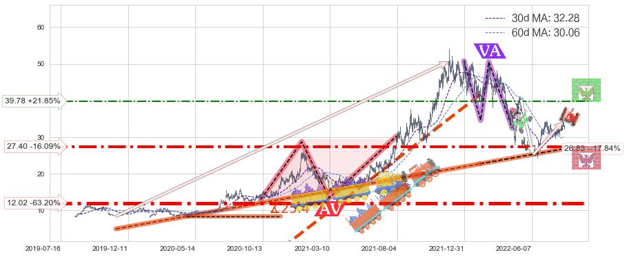 ♘ 阻力价格位39.78,可信任强度52.26%,距离最后交易2022-08-12形成的收盘价格32.65相差 +21.85%