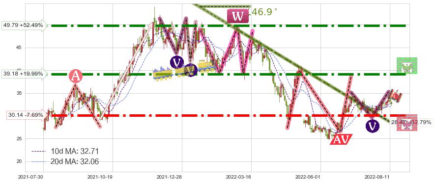 ♘ 阻力价格位39.18,可信任强度91.63%,距离最后交易2022-08-12形成的收盘价格32.65相差 +19.99%