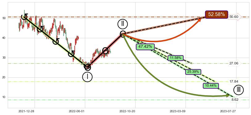 ➣ c.1: 当前c浪回调位置(2022-08-10, 34.25),仍然有回调空间