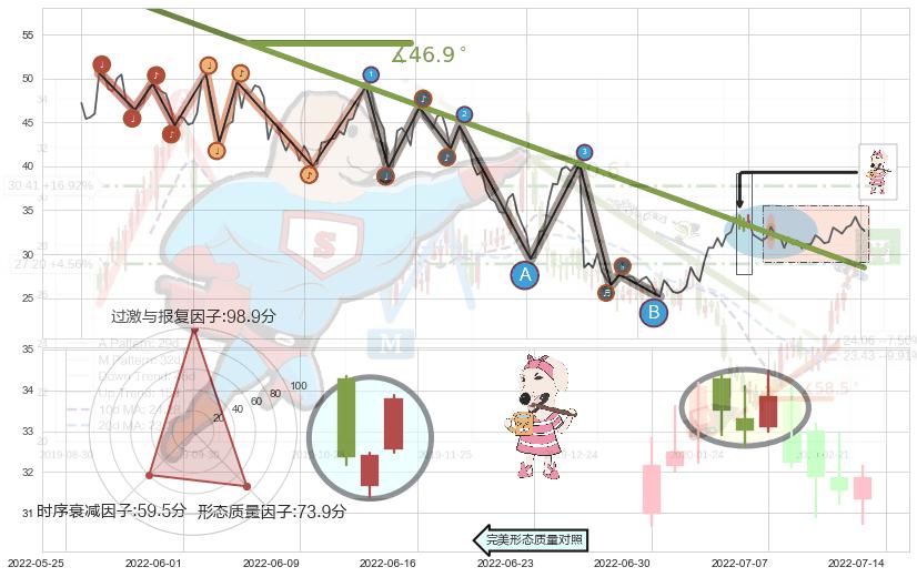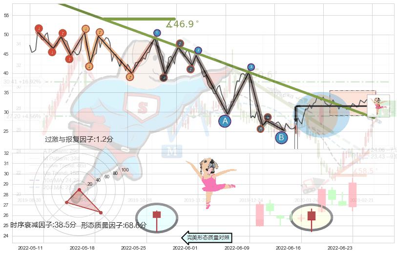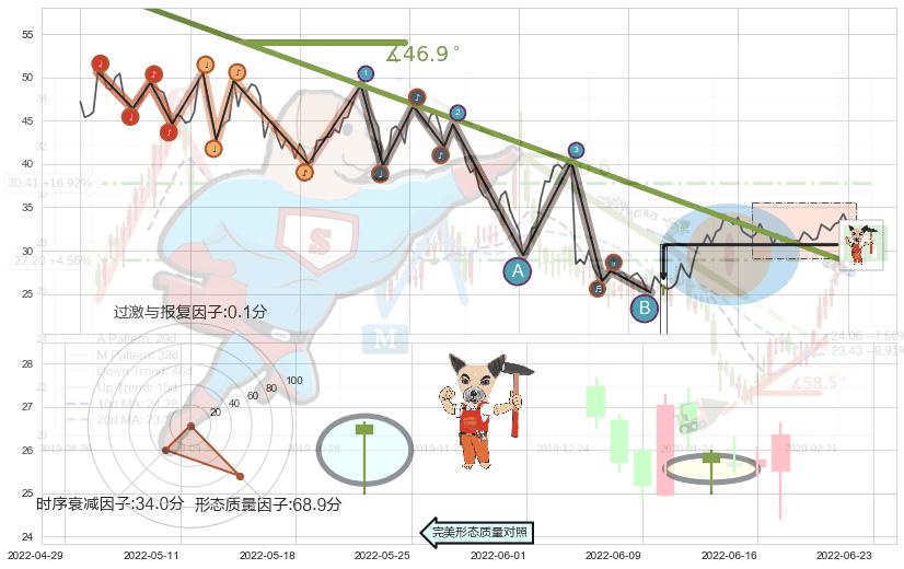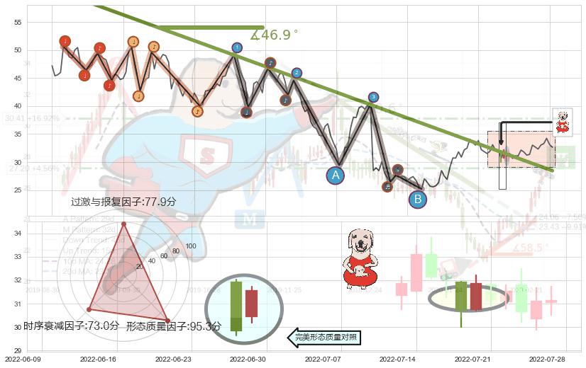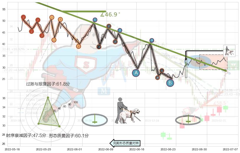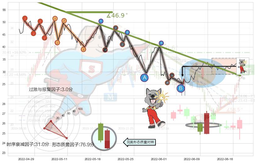 ➢ 2021-11-29-2022-07-01下跌趋势存在反转上涨[机会],其原下跌趋势的阻力位(28.47)已被突破[强支撑信号],原下跌趋势角度: 46.9˚