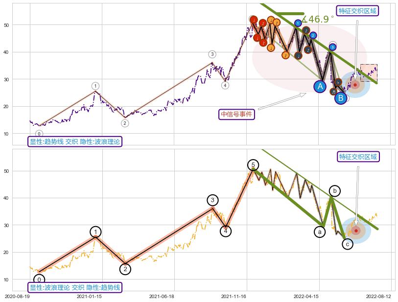 ➢ 趋势线属【中级别信号事件】波浪理论属【长级别信号事件】中长周期组合信号事件,中长事件长度比37.59%