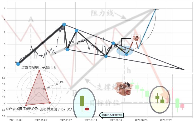 ♘ 支撑价格位5.35,可信任强度96.57%,距离最后交易2022-08-12形成的收盘价格5.37相差 -0.38%