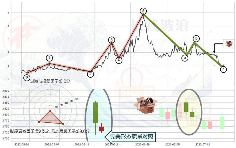 ➣ 阴包阳形态 + 波浪理论击穿破位C点继续下跌信号叠加后【反向回撤率】偏高,【看空】信号叠加【存续影响降权】