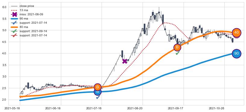 2021-05-18至2021-11-01 慢线与快线呈多头排列, 慢线与快线接触少,无缠绕