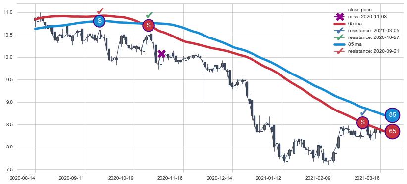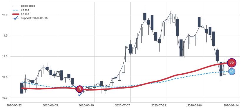➣ 65小时均线于(2022-08-03: 7.67)形成【金叉】基于【金叉历史模型】预测金叉后最高波峰价格: 8.55, 金叉后最高价格8.26,尚未达到预测最高波峰价格, 预期继续上涨