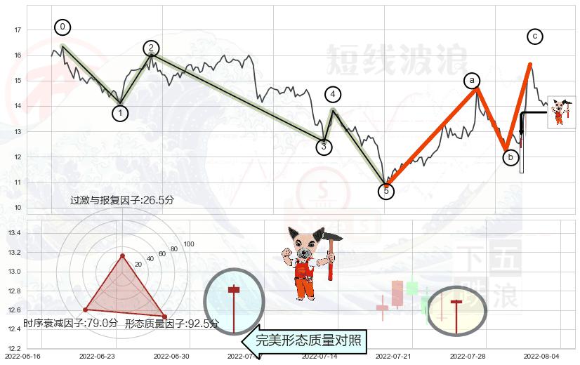 ➣ 锤头线(锤子线) + 波浪理论击穿突破C点继续上涨信号叠加后【信号初始稳固度】中等,【看多】信号叠加【可信度影响中等】