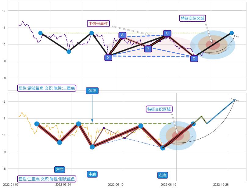 ➢ 谐波鲨鱼属【中级别信号事件】三重底属【长级别信号事件】中长周期组合信号事件,中长事件长度比47.55%